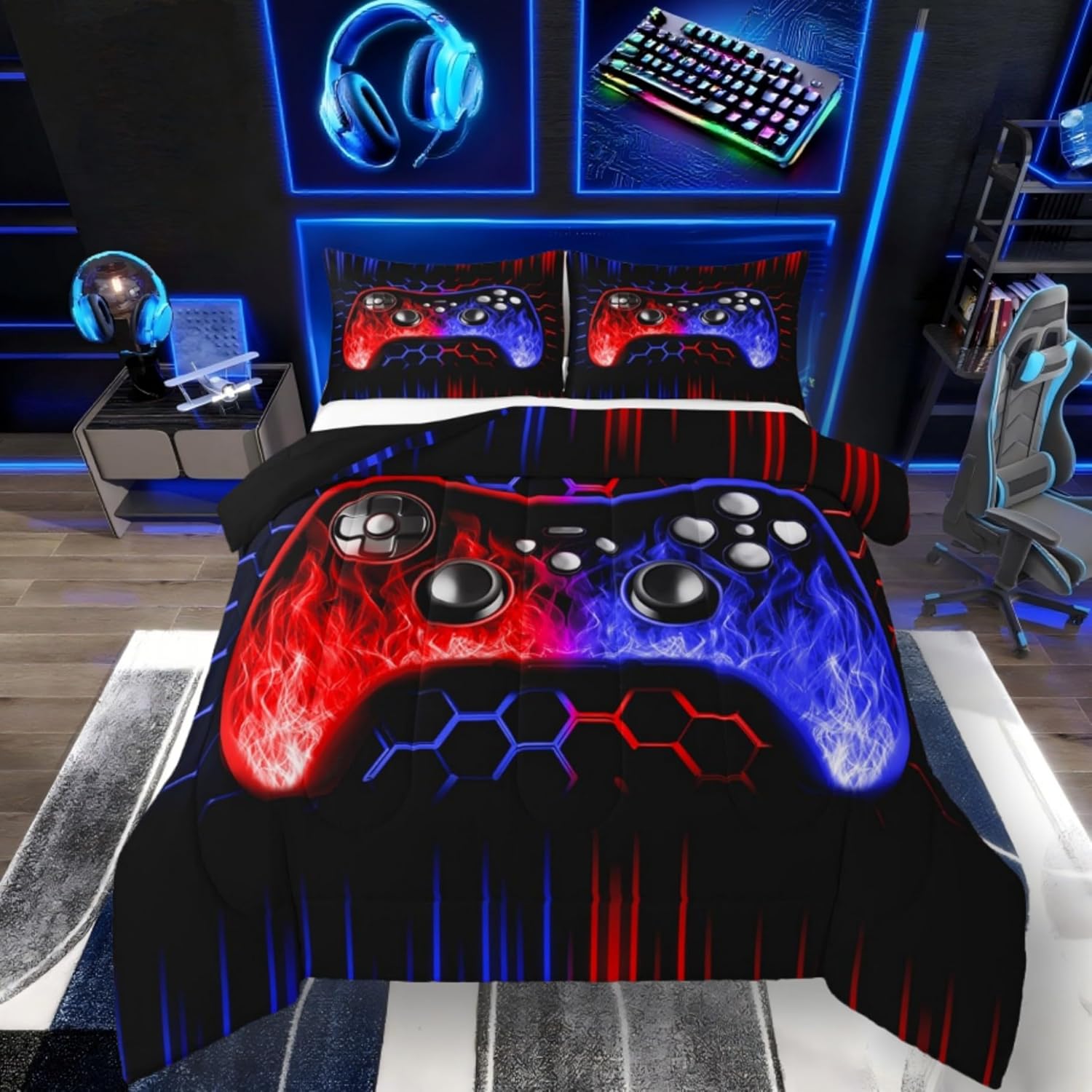 • Multi-Purpose Usage: This Gaming Headset PC Gamer Gaming Chair Gaming PC Gaming Keyboard Gaming Mouse Pad Kids Comforter Sets Boys Is Not Very Heavy,But Still Provides Enough Warmth! Perfect Gaming Bedding Sets for Boys,Suitable for Spring,Winter,Summer Or Warmer Weather,Order 1 Gaming Headsets Boys Comforter Sets Twin Bedding Sets for Boy Bedroom Decor Twin Bed Sets for Boys and Use All Season.Use As Gaming Duvet Cover Set,Quilt,Bedspread,Blanket,Bed Cover