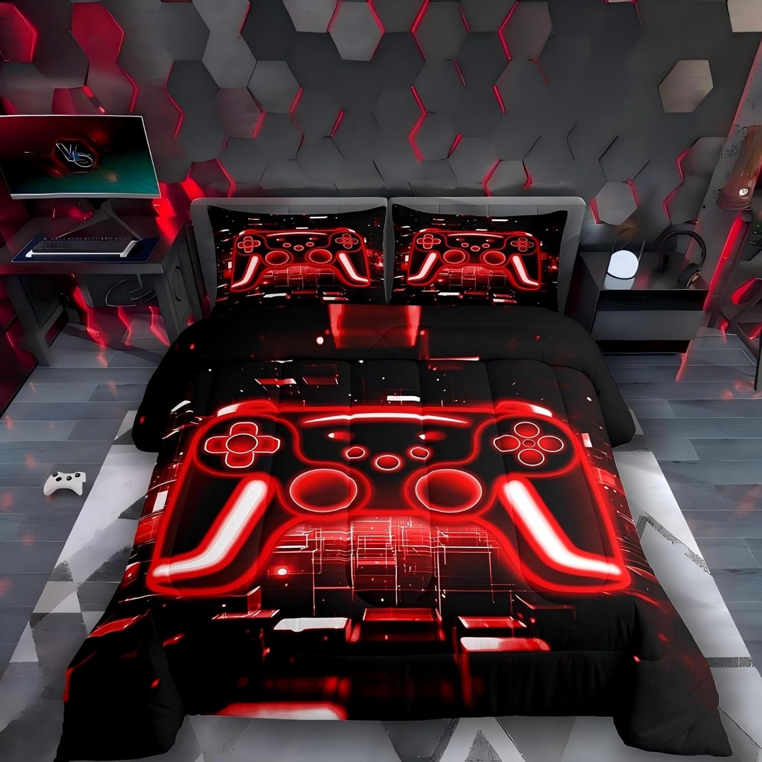 • What You Can Get: 1 Queen Size Teen Boy Bedding Down Comforter 90"X90" and 2 Pillow Cases 30"X20" Toddler Bed Sets for Girls,Chic Teen Boy Bedding Gaming Bed Design Make Your Bedroom Stylish,You Can Get Two Styles for One Product ! (One Side - 3D Gamepad and The Other Side - Black)